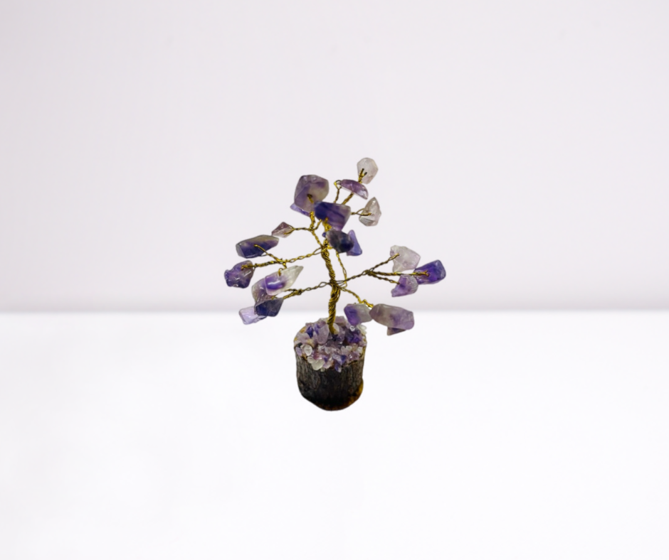 Bring serenity and spiritual clarity into your home with this mini amethyst crystal tree. Each chip sparkles with calming purple hues, perfect for meditation spaces or bedside tables.