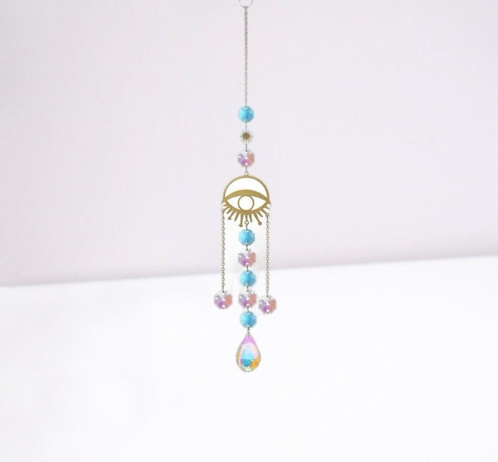 A symbol of clarity and protection, this eye-shaped sun catcher sparkles with intention. Hang it near a window and let the light bring peace and insight.