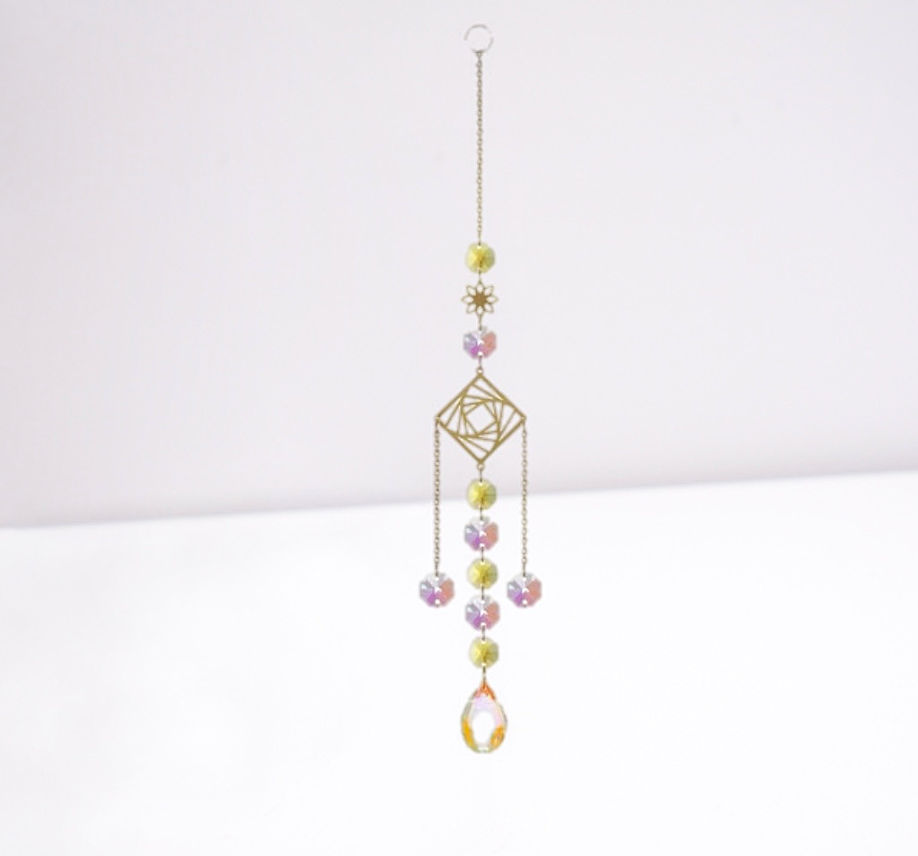 Watch the light dance across your room with this kaleidoscope sun catcher. A playful and enchanting piece that brings joy to any window.