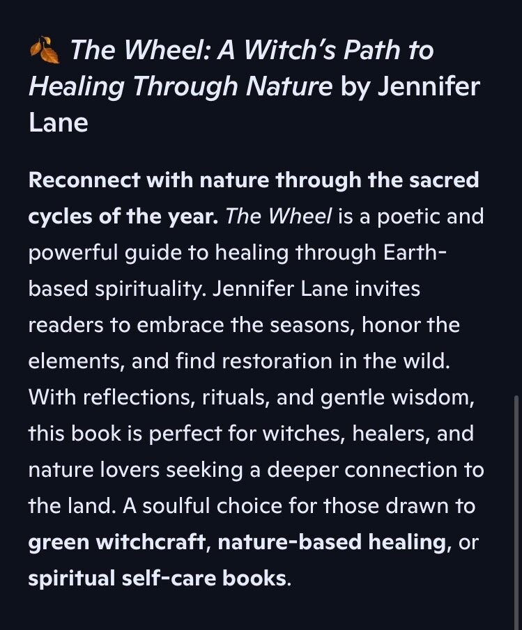 🍂 The Wheel: A Witch’s Path to Healing Through Nature by Jennifer Lane